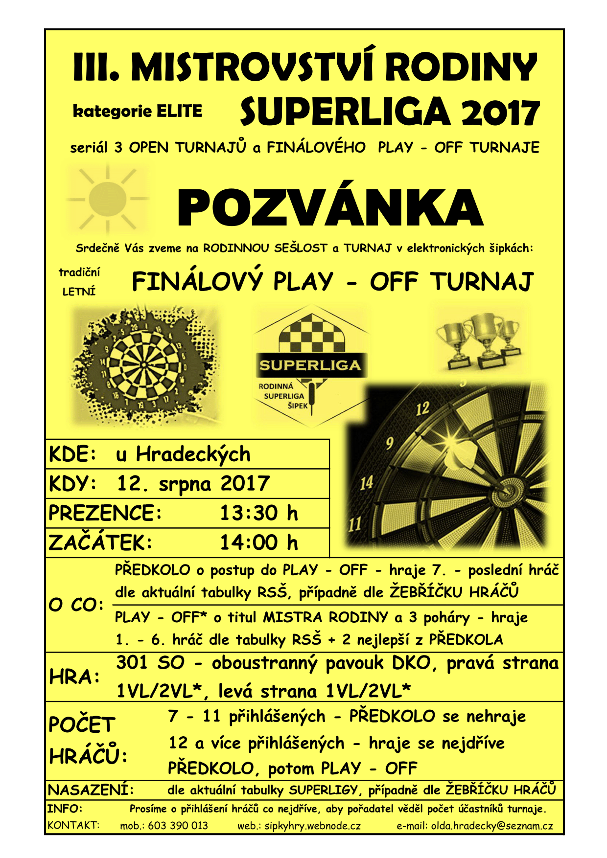 Turnaj PLAY - OFF o titul MISTR RODINY bez PŘEDKOLA se bude pořádat jen za podmínky přihlášení 8 - 11 hráčů.