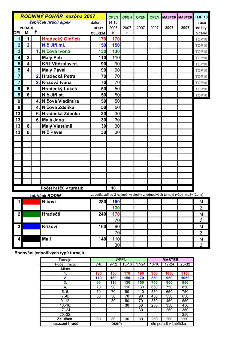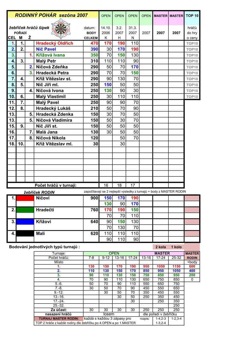 MISTROVSTVÍ RODINY o poháry, MASTER TURNAJ o medaile, OPEN TURNAJ