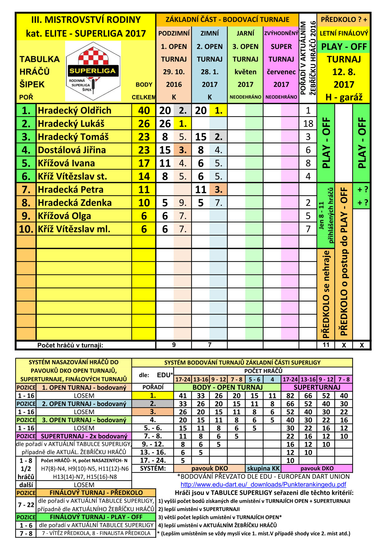 TABULKA RODINNÉ SUPERLIGY ŠIPEK 2017